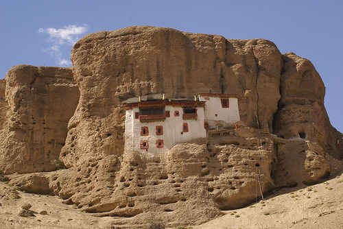 Rizong Monastery is an isolated gompa tucked away at the far end of a narrow gorge. It was founded in 1831 by Lama Tsultim Nima, his sacred relics are kept inside a large chorten (stupa) in the monastery. 40 monks of the Gelugpa lineage reside in the gompa, following very strict rules. Several meditation caves can be found around the complex, it is believed that the eighth-century Buddhist master Guru Padmasambhava meditated in one of these caves. Surrounded by apricot trees, the Chulichan Nunnery is located 2 kilometres from the monastery, it is home to 20 nuns.